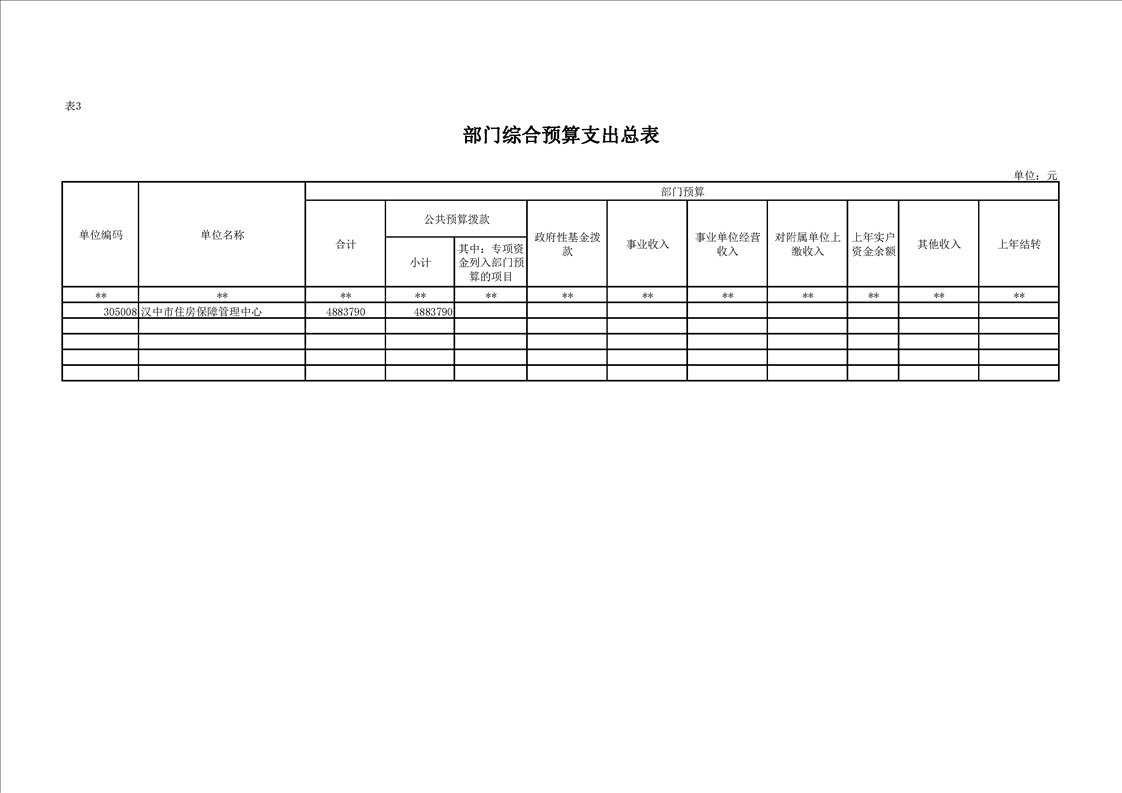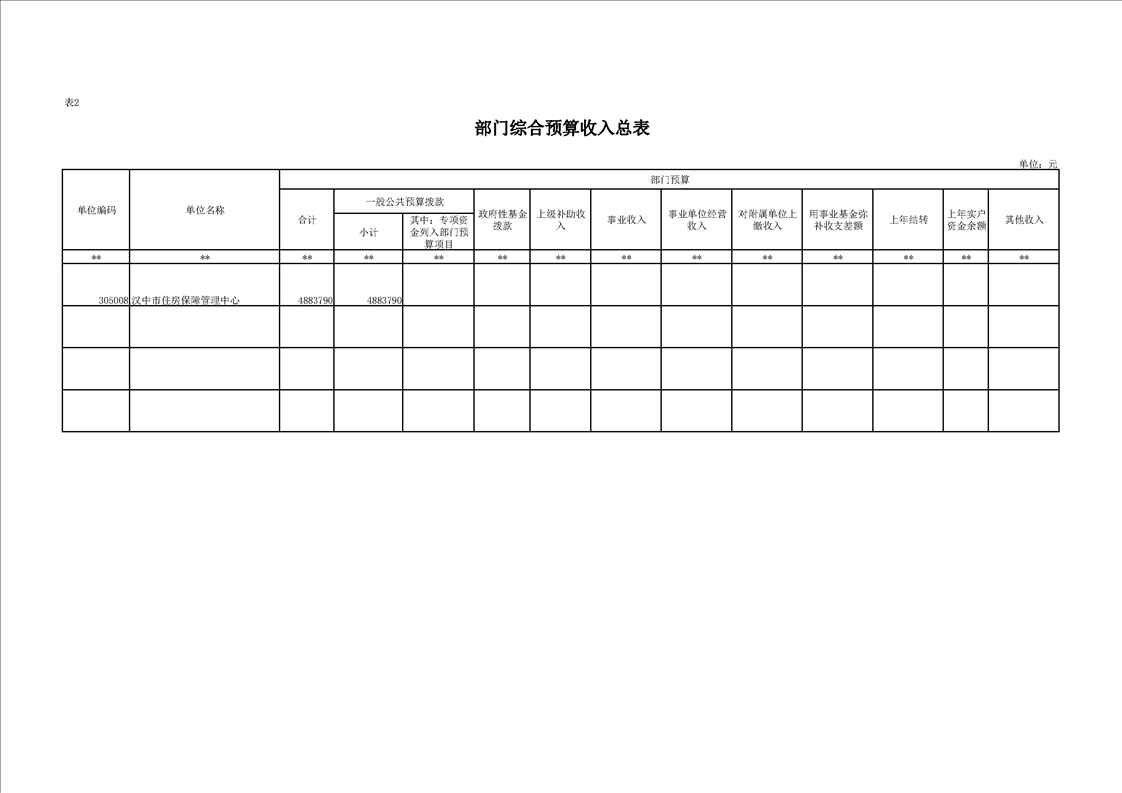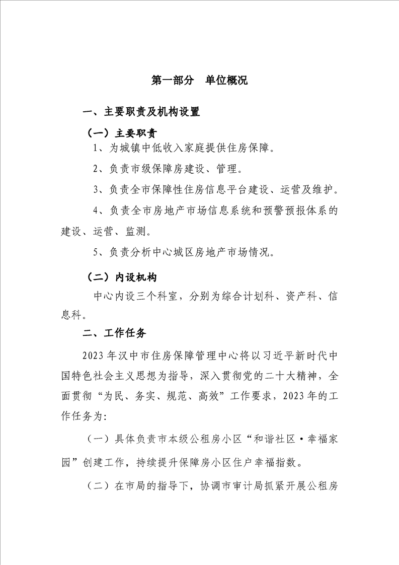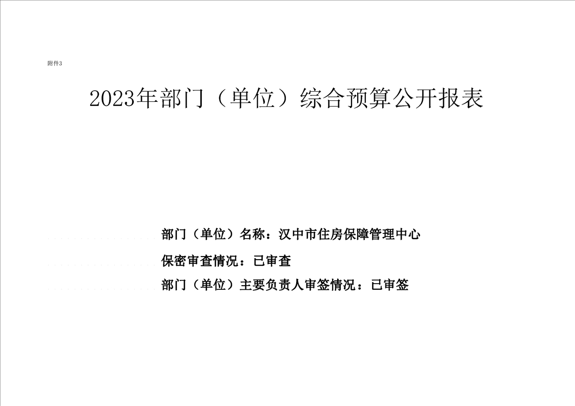 汉中市住房保障管理中心2023年预算公开