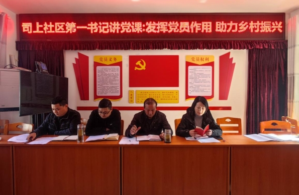 在司上社区,与社区党支部联合开展“主题党日+”活动,开展专题学习、诵读党章等活动,认真学习“枫桥经验”、重温入党誓词。市住建局驻司上社区第一书记结合乡村振兴、为民服务等内容作《发挥党员作用,助力乡村振兴》专题党课,号召支部党员发挥模范带头作用,深入开展入户走访帮扶实践活动,了解群众生产、生活情况,宣讲政策,叮嘱群众冬季森林防火、用火取暖和用水防冻安全,注意呼吸道传染病防治,了解群众需求,帮助解决生活中的困难和问题。