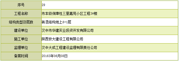 汉中市华建实业投资开发有限公司市本级保障性三里嘉苑小区工程3#楼