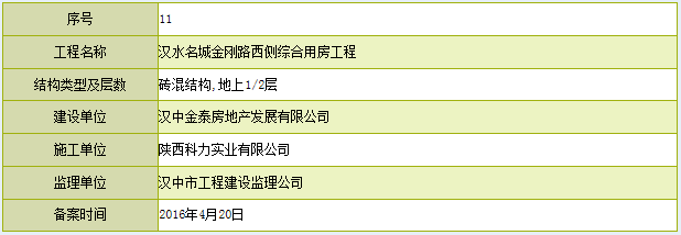 汉中金泰房地产发展有限公司 汉水名城金刚路西侧综合用房工程